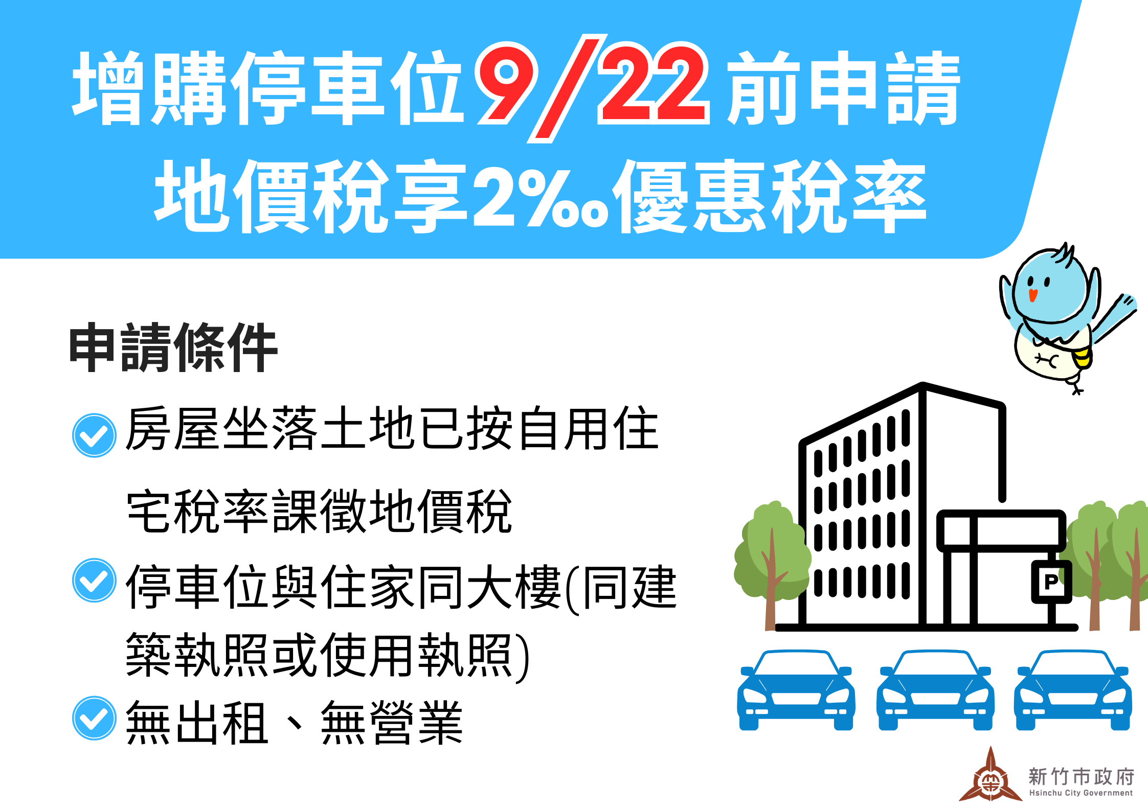 ![]() 記者鄧宜/新竹報導 隨著家庭成員的增加或通勤需求,不少民眾會增購停車位。新竹市稅務局提醒,房屋坐落土地若已享有自用住宅用地優惠稅率,後續再增購同棟大樓停車位,只要符合自用住宅條件,地價稅仍可申請按優惠稅率2‰課徵,與一般用地稅率10‰相比,至少可節省4倍稅金。 稅務局說明,納稅義務人持有的大樓房屋,若已按自用住宅稅率課徵地價稅及房屋稅,日後再購買同一棟大樓(同建築執照或使用執照)的停車位,只要該停車位為自用,沒有出租或營業情形,同樣能申請適用自用住宅稅率。特別的是地下停車位,還可申請免徵房屋稅,但如果新購停車位非屬主建物基地或有出租、營業情形,就無法適用自用住宅稅率。 稅務局舉例,竹市張先生幾年前買了一間大樓房屋,並已申請地價稅及房屋稅按自用稅率課徵。最近因為通勤需要,添購第二台車,又向鄰居購買一個停車位,因新購停車位與原有房屋屬同一建築執照,所以可以比照住家申請按自用住宅用地稅率課徵。於是張先生趕在9月22日前提出申請,今年地價稅就能享有2‰自用住宅用地優惠稅率,且因停車位位於地下室,所以房屋稅也可申請免徵。 稅務局提醒,地價稅自用住宅用地優惠稅率2‰,而一般用地稅率為10‰至55‰,相差至少4倍,土地所有權人欲申請自用住宅優惠稅率,應於9月22日以前向稅務局提出申請,當年度才可適用,逾期申請者,自申請之次年開始適用。此外,房屋稅自住房屋須有本人、配偶或直系親屬辦竣戶籍登記,才可享有自住住家用稅率,尚未辦竣戶籍登記者,最遲應於115年3月23日前(原訂3月22日,遇假日展延)完成並提出申請,未辦竣戶籍登記的自住房屋,將按非自住住家用稅率 2.6%-4.8%課徵房屋稅,與適用自住住家用稅率最大相差4倍之多。 為便利民眾申辦,稅務局提供多元申辦管道,包括臨櫃辦理、書面郵寄、傳真,或透過線上申辦服務(https://gov.tw/PaT),免奔波、快速又方便。如有任何疑問,請至稅務局網站查詢或撥 03-5225161轉 422-437、0800-000321、1999 市民服務專線,將有專人為您服務。 |