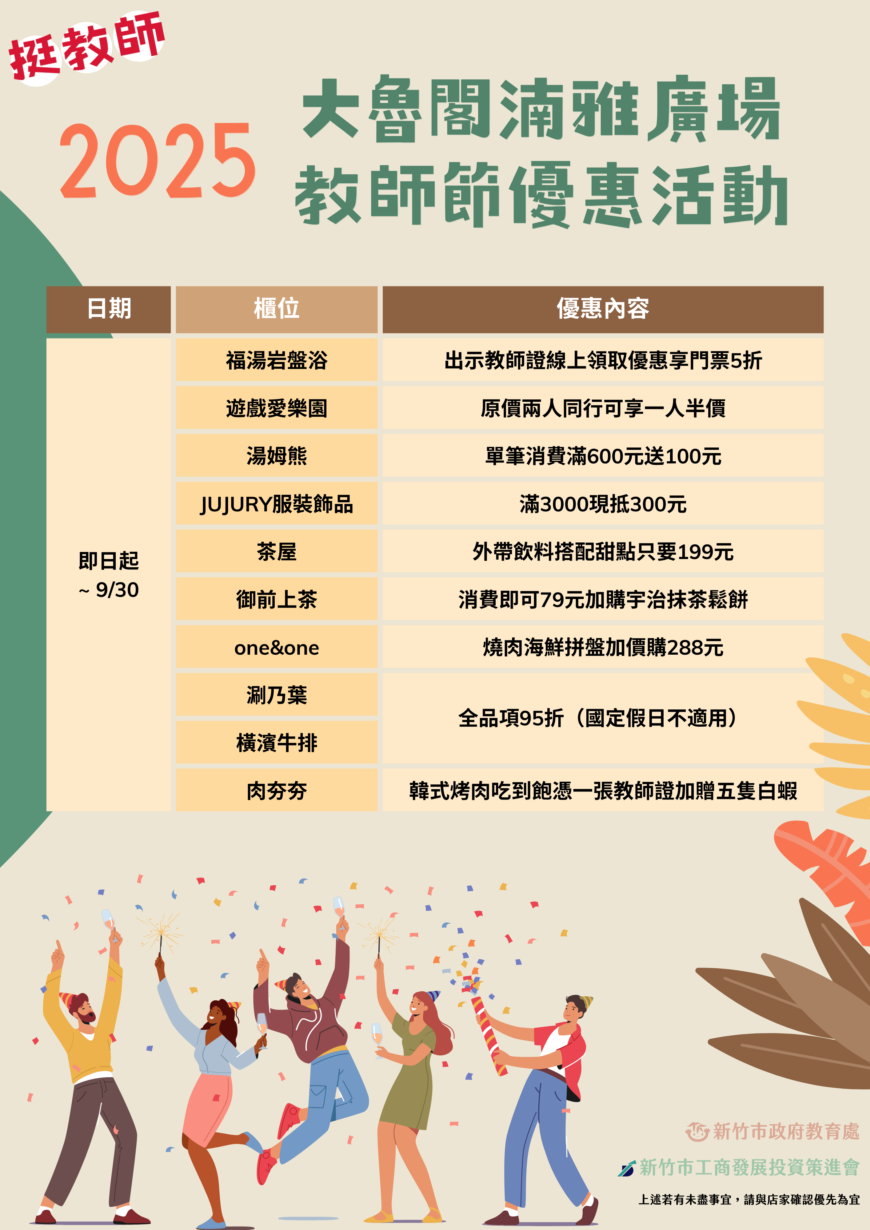 歡慶教師節 竹市府攜手巨城、大魯閣推專屬優惠