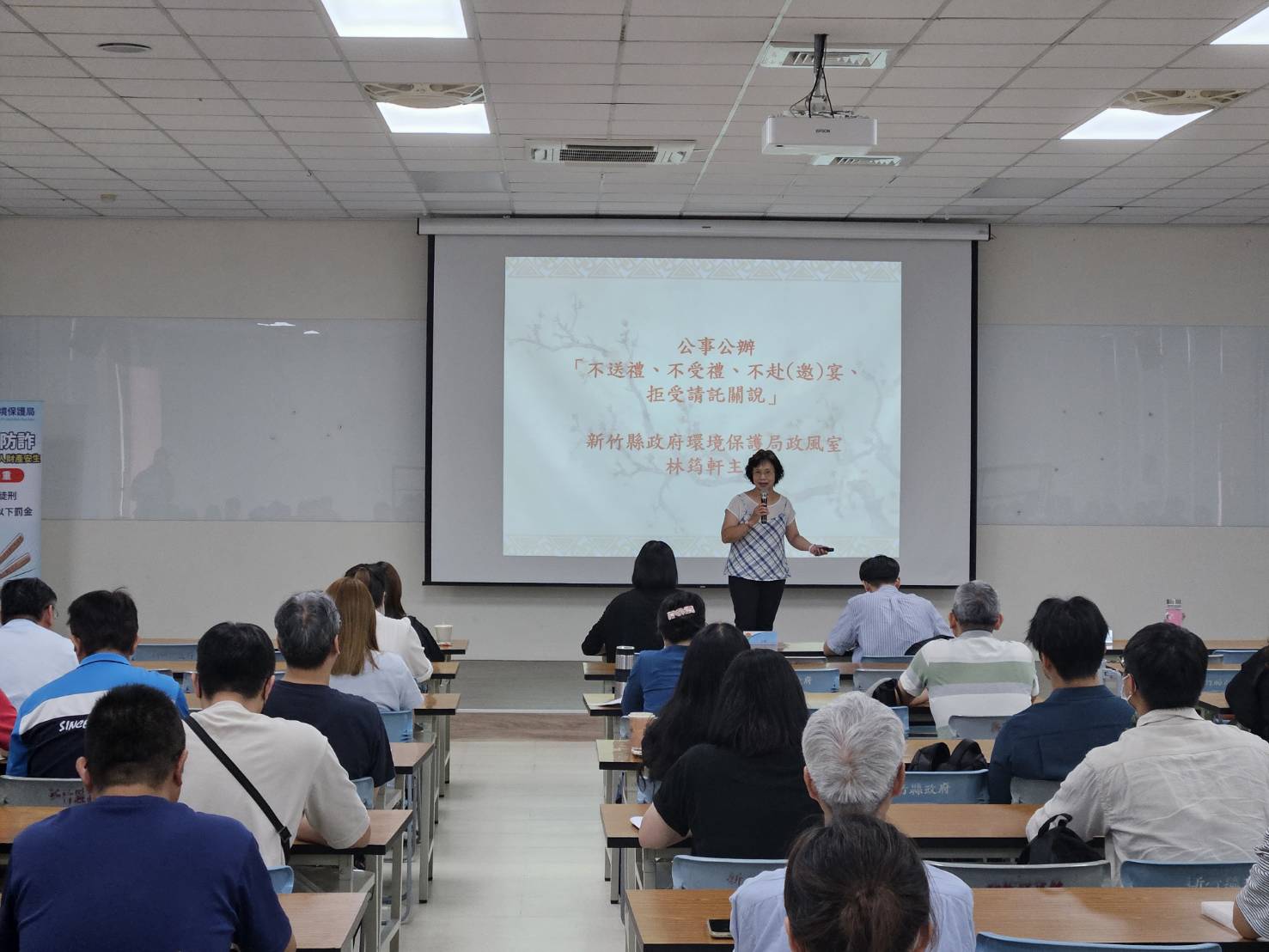 秋節前夕 竹縣環保局向環評業者宣導公務人員拒受饋贈、辨識詐騙及建構廉能政府