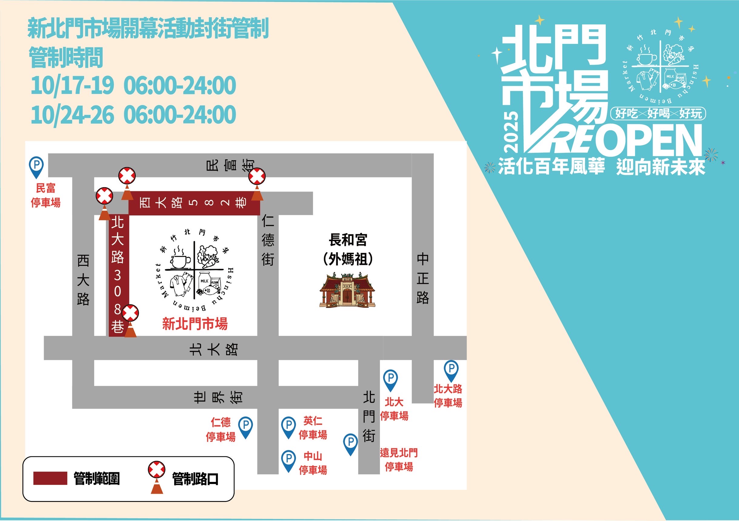 ![]() 記者鄧宜/新竹報導 新竹市「北門市場」將於10月18日正式開幕,活動期間預期將湧入大量採買人潮。為確保民眾安全及周邊交通順暢,市府將於市場周邊實施交通管制措施,提醒用路人留意相關資訊,行經時請配合現場指揮及改道指示,造成不便,敬請見諒。 交通處提醒,開幕期間人潮眾多,現場將視情況進行彈性交通調整,請民眾配合現場交管人員指揮,以確保行人與車輛安全。相關活動資訊可洽詢主辦單位新竹市政府產業發展處。 【管制時間及路段資訊說明】 ●交通管制時間: 一、114年10月17日(星期五)6時至114年10月19日(星期日)24時。 二、114年10月24日(星期五)6時至114年10月26日(星期日)24時。 ●交通管制路段: 一、北大路308巷(北大路至西大路582巷)實施封路管制。 二、西大路582巷(仁德街至北大路308巷)實施封路管制。 |