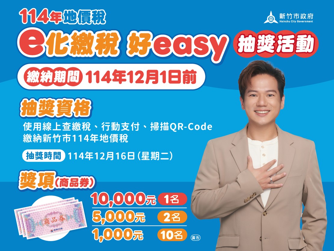 地價稅11/1起開徵 竹市稅務局推「e化繳稅好EASY」再抽萬元商品券