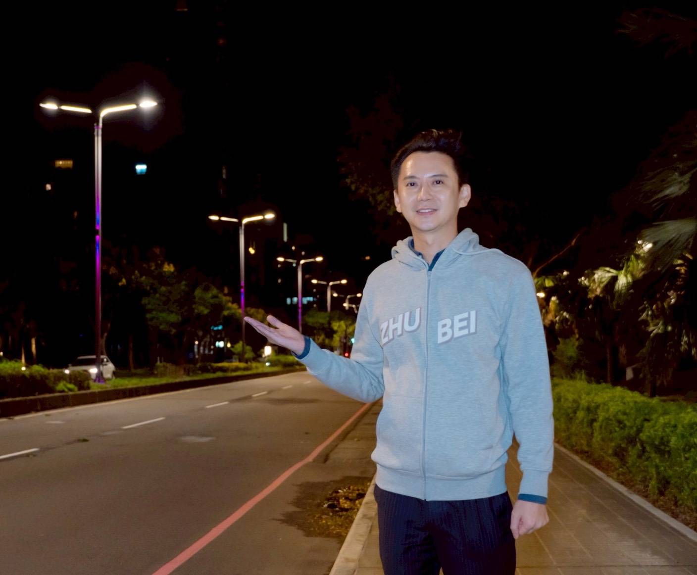 為頭前溪畔跑者點燈 竹北市長鄭朝方在興隆路設置專利竹北燈