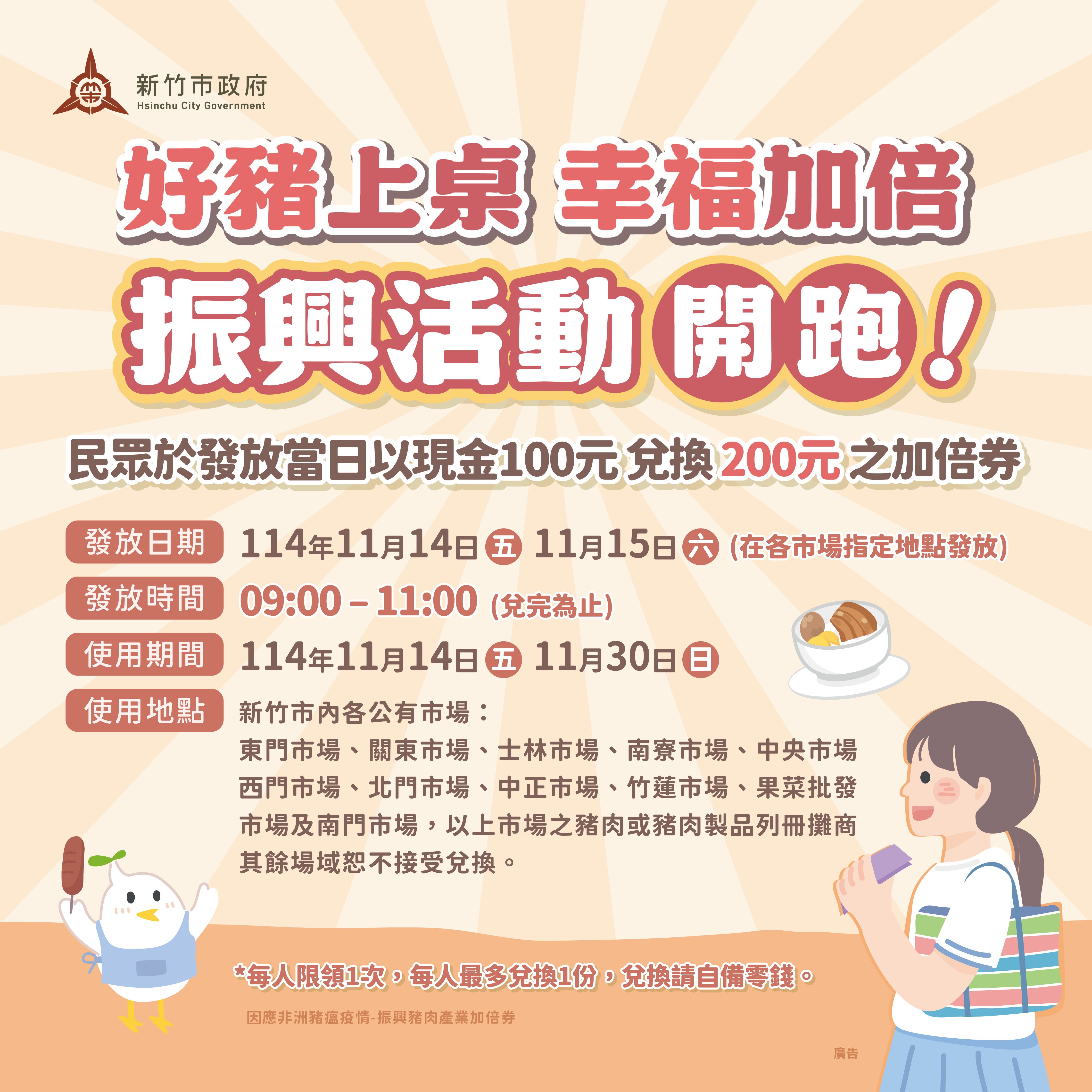 竹市「好豬上桌 幸福加倍」開跑 加倍券首日吸引大量民眾兌換