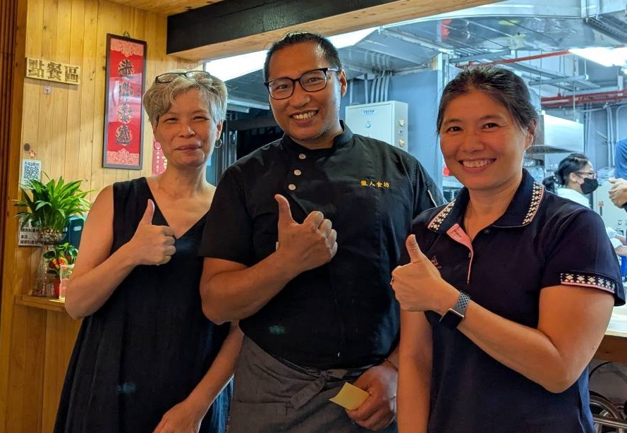 自美返臺省親的鄧小姐(右)特與主廚諾命達力(中)合影,鄧小姐盛讚今日之原住民風味料理猶如法式料理般精緻。.jpg)