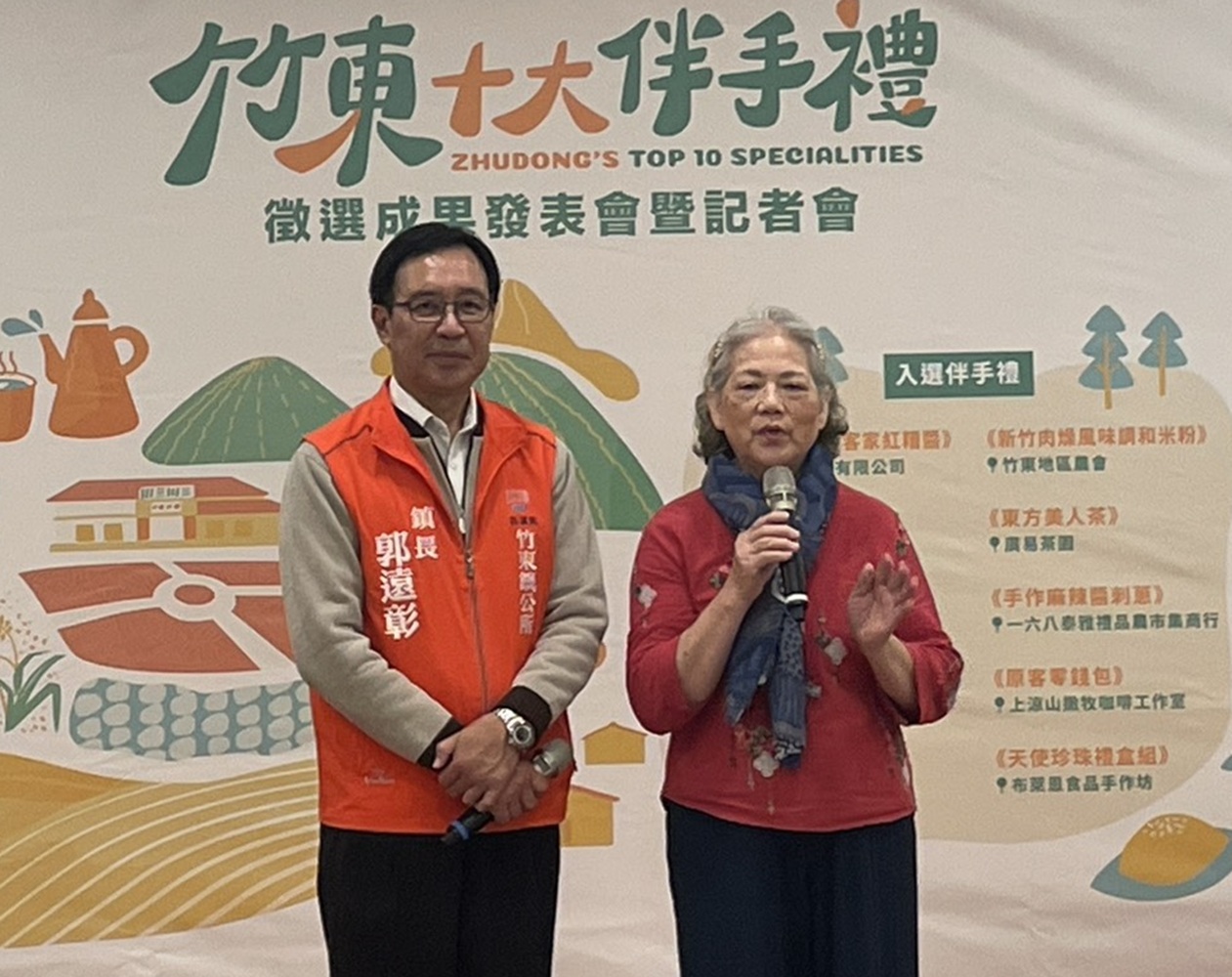 郭遠彰說,這是竹東鎮有史以來「第一次」舉辦的十大伴手禮徵選活動,評審秉持最專業、公正的原則,從眾多優秀的產品中,為竹東精挑細選最具代表性的十項精品。入選的10家業者及其產品分別是:客滿築股份有限公司的「滿珍香牧場客家紅糟醬」、新東興食品企業社的「乾麵禮盒」、華品畜牧場的「賴桑放牧式養生蛋」、政進農產商行的「阿娟姐客家鹹菜」、阿金姐工作坊的「桔時梅好」、竹東地區農會的「新竹肉燥風味調和米粉」、廣易茶園的「東方美人茶」、一六八泰雅禮品農市集商行的「手作麻辣醬刺蔥」、上涼山撒牧咖啡工作室的「原客零錢包」、布萊恩食品手作坊的「天使珍珠禮盒組」。