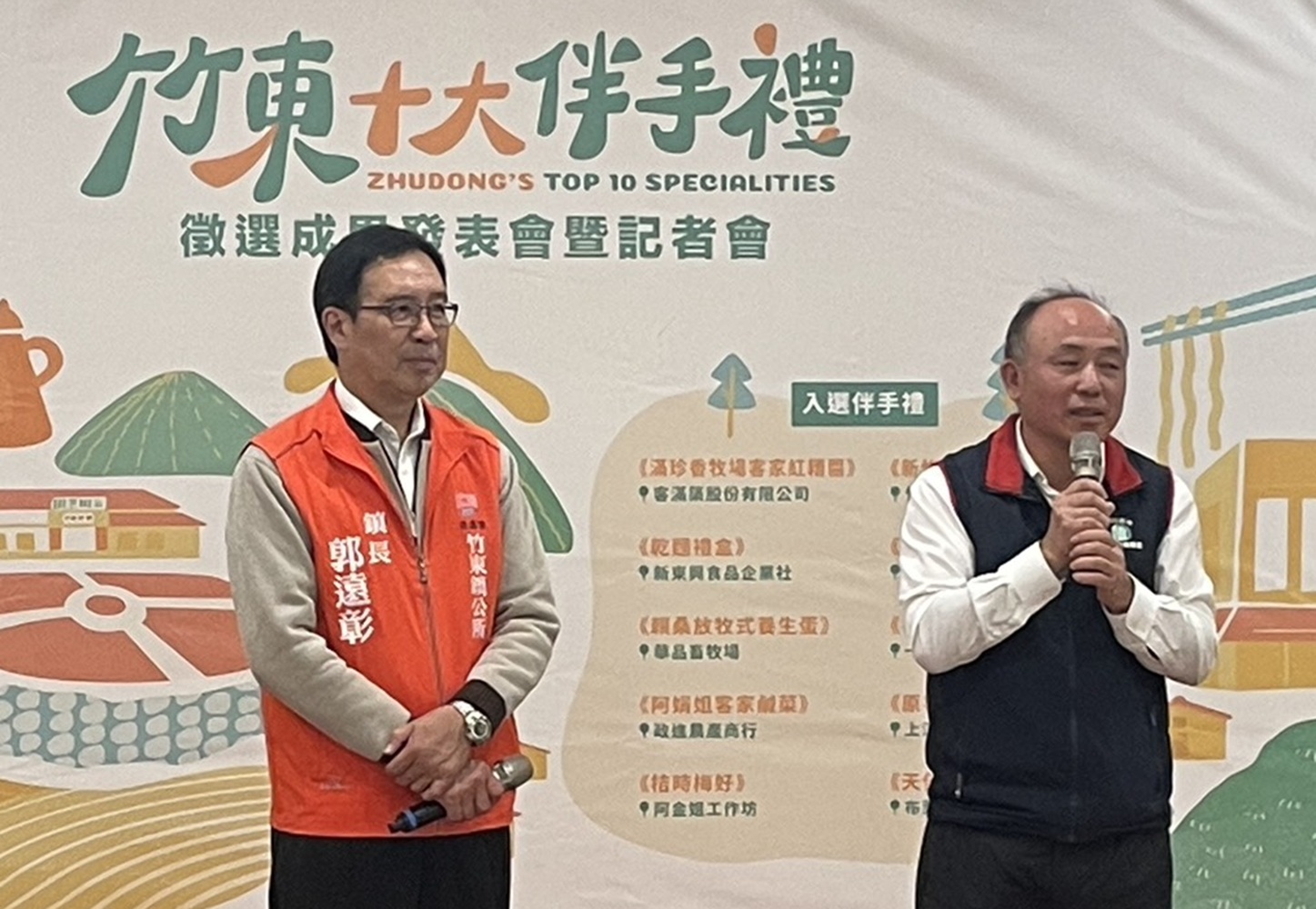 竹東鎮長郭遠彰表示,推出「竹東鎮十大伴手禮」是他上任以來,一直想做的一件事。竹東目前是全台最大鎮,可望在不久突破10萬人口,正朝著升格為「竹東市」的目標全力衝刺。鎮公所團隊為此全力推動「城鎮行銷」要讓大家認識竹東,最好的方式就是拿出有「誠意」和「創意」的好禮物來交朋友,「伴手禮」就是承載這份誠意與創意的最好媒介。