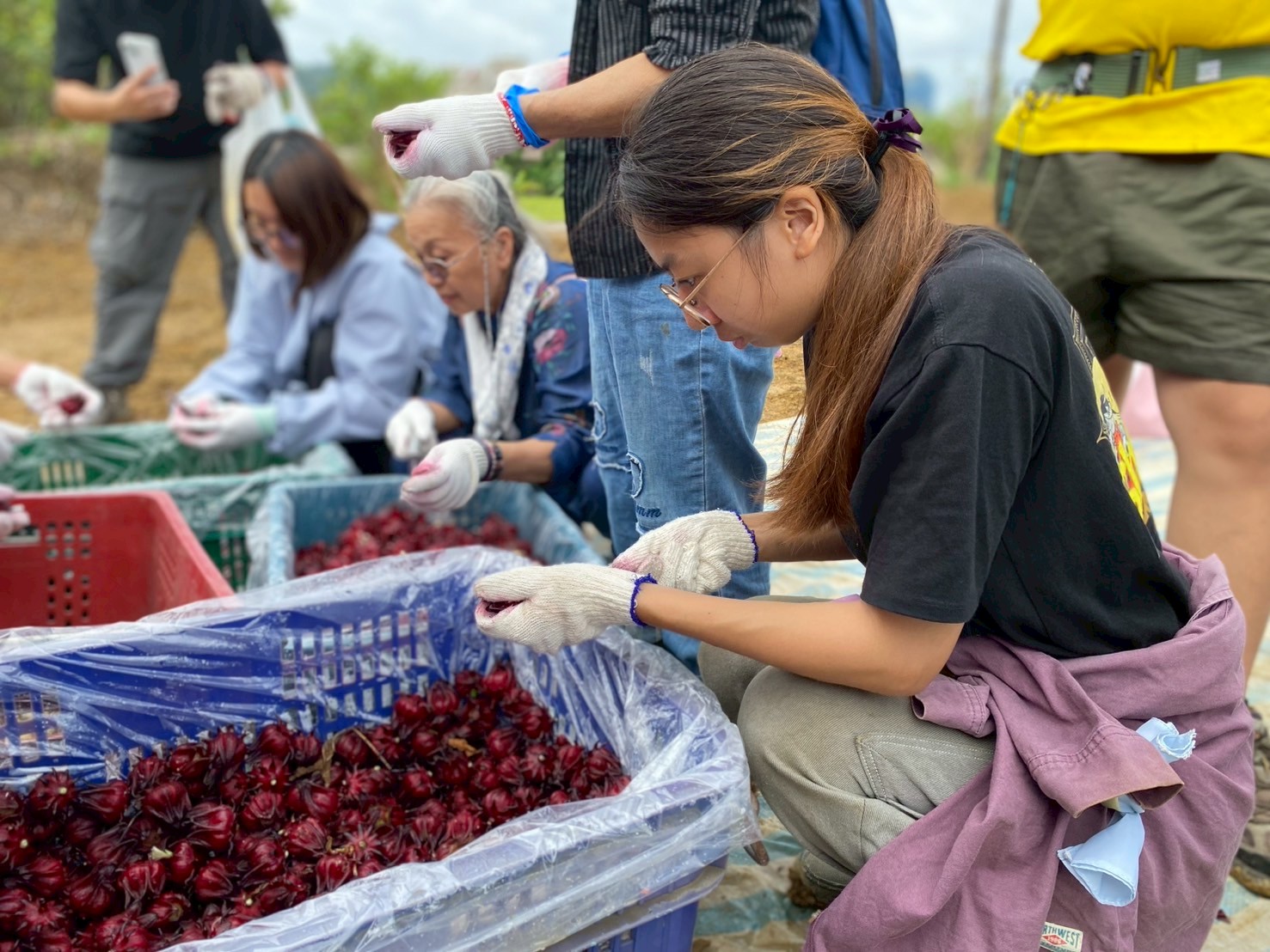 新竹縣農會號召縣轄農會近三百人 助拙茁家園採收727斤洛神花