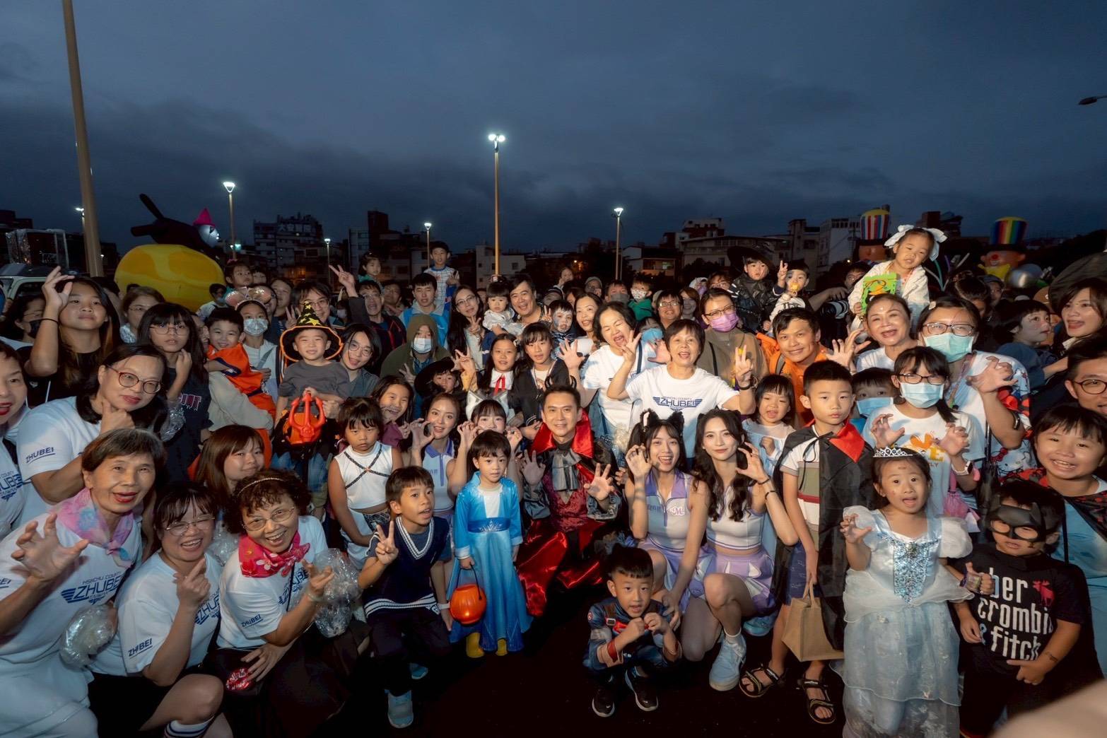 竹北市長鄭朝方邀藍波、東諺、嘻小瓜、彭彥鳴領千位市民萬聖齊舞