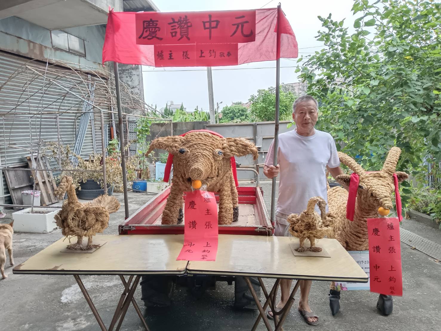 藝術家張上鈞以環保稻草神豬神羊慶讚中元